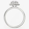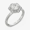 Hexagon halo ring with straight baguettes and round diamonds