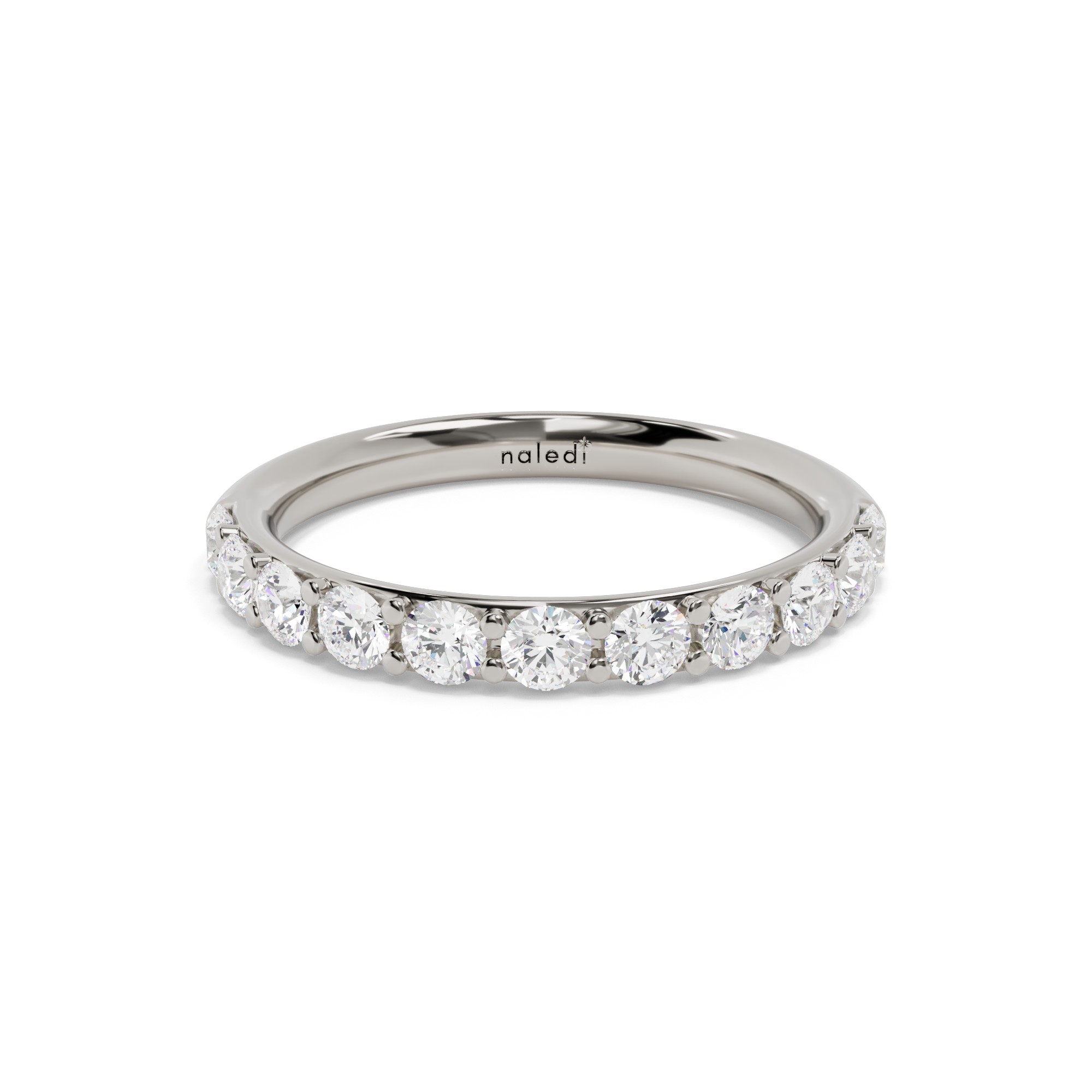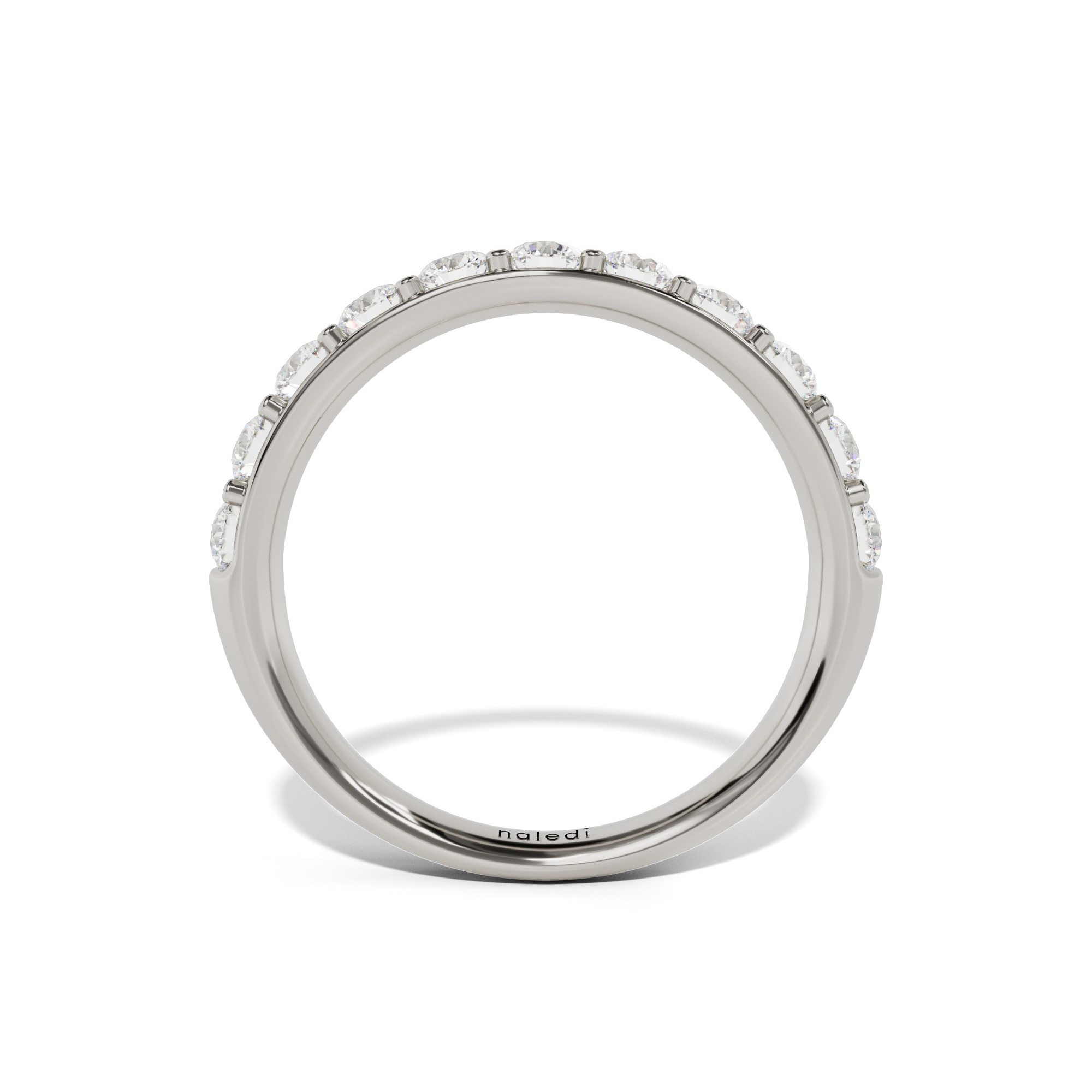 Shared prong half way diamond band. 2.5mm wide shank.