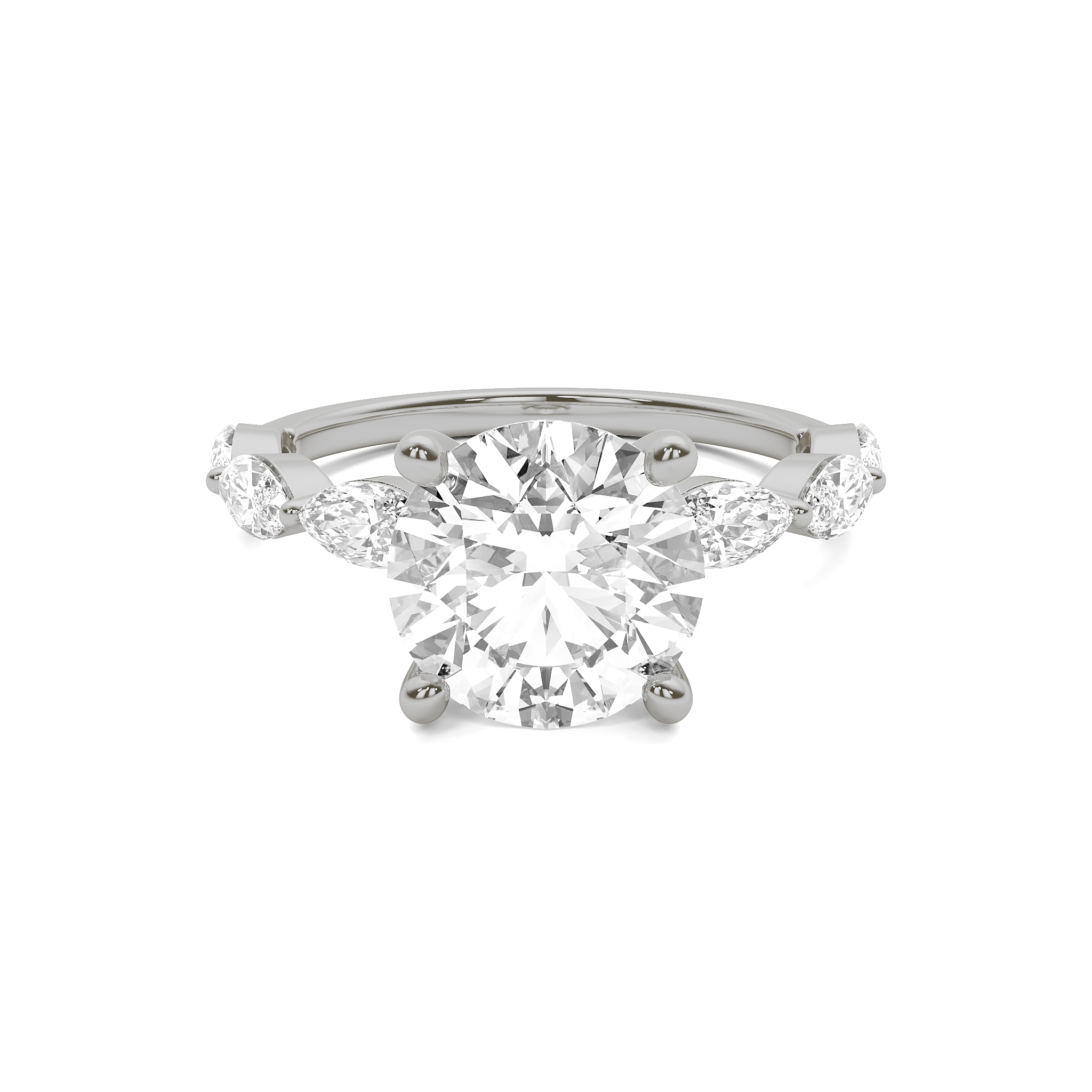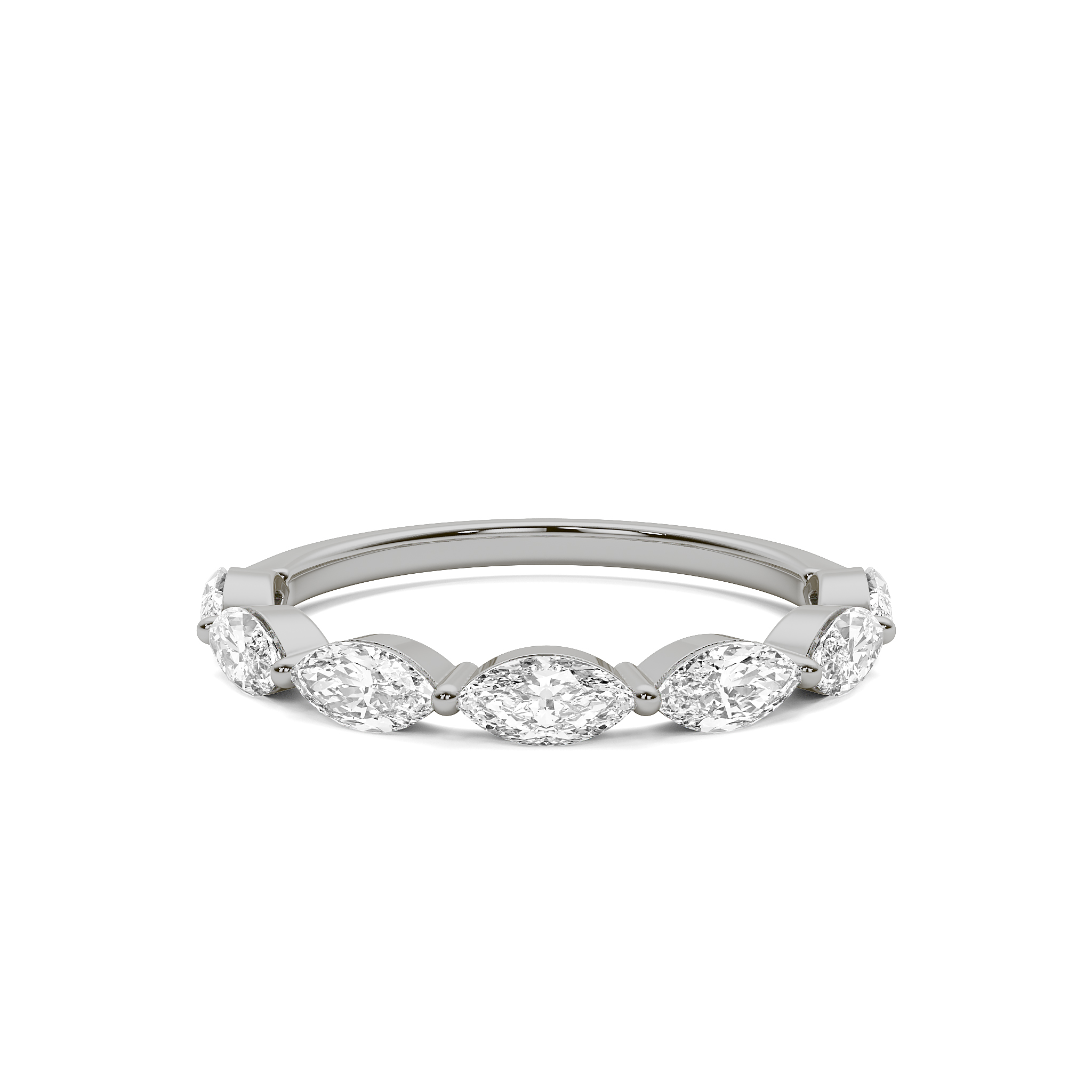 Larger shared prong marquise diamond ring. 1.6mm wide shank.
