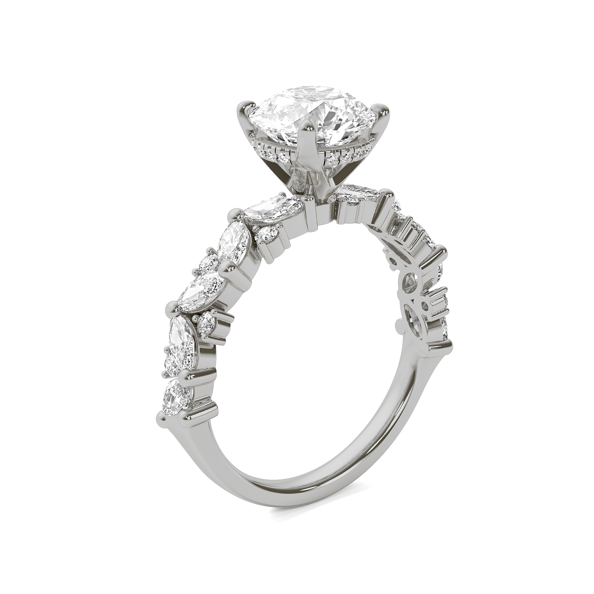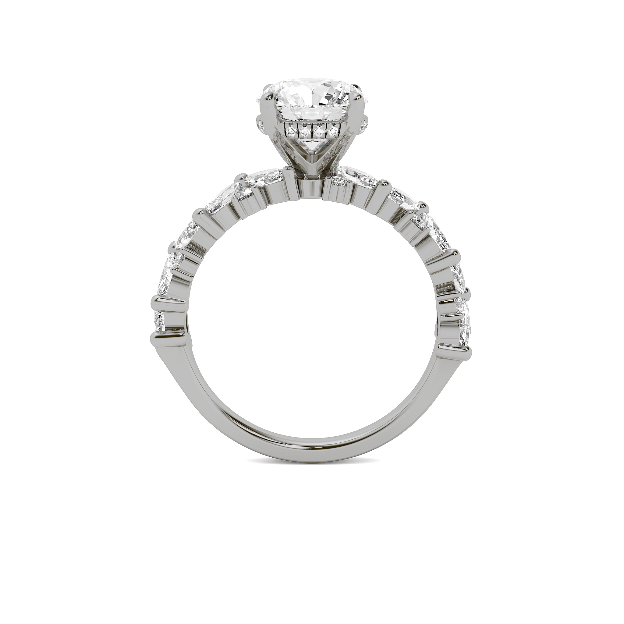 Alternating marquise and round diamond ring with hidden halo. 2mm wide shank.