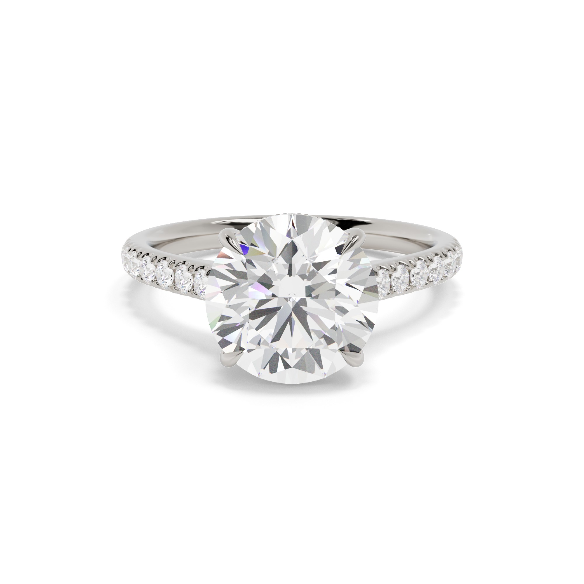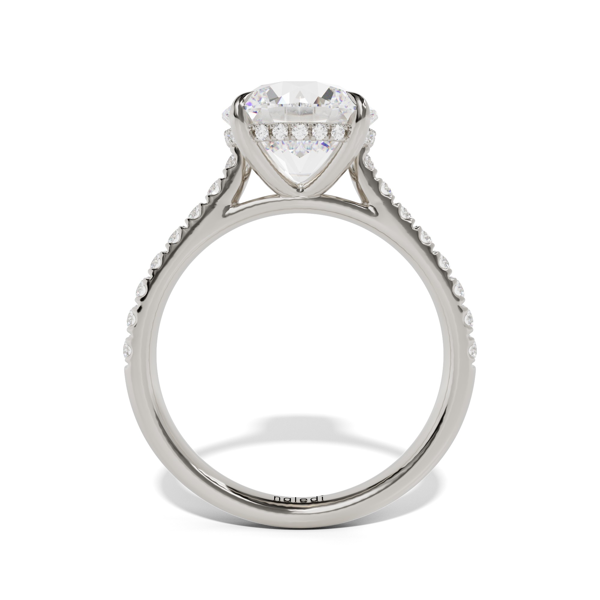 Engagement ring with a diamond cathedral shank and a hidden halo
