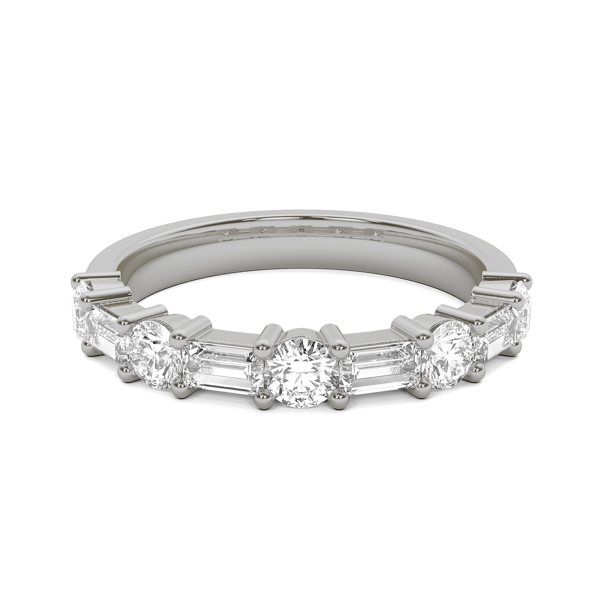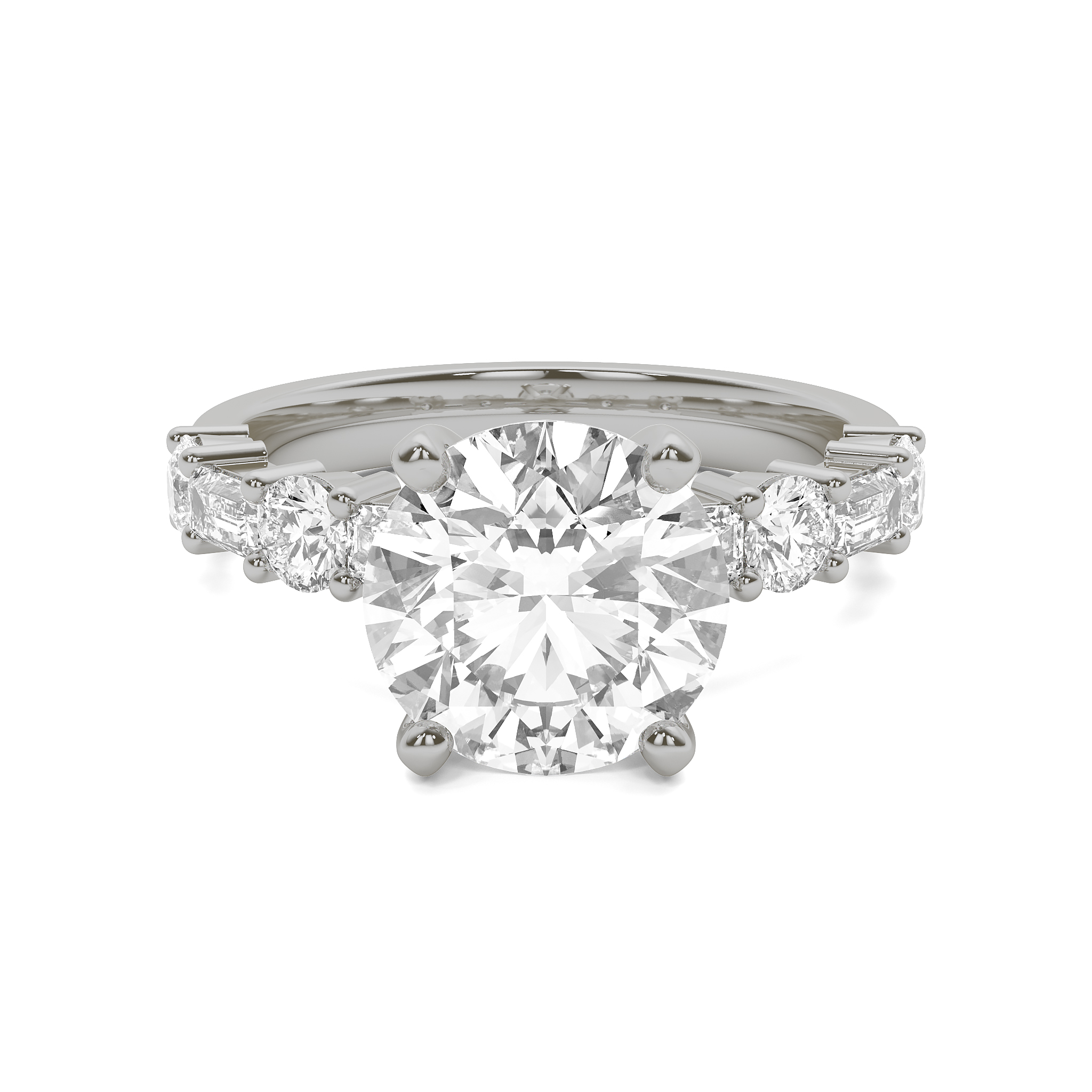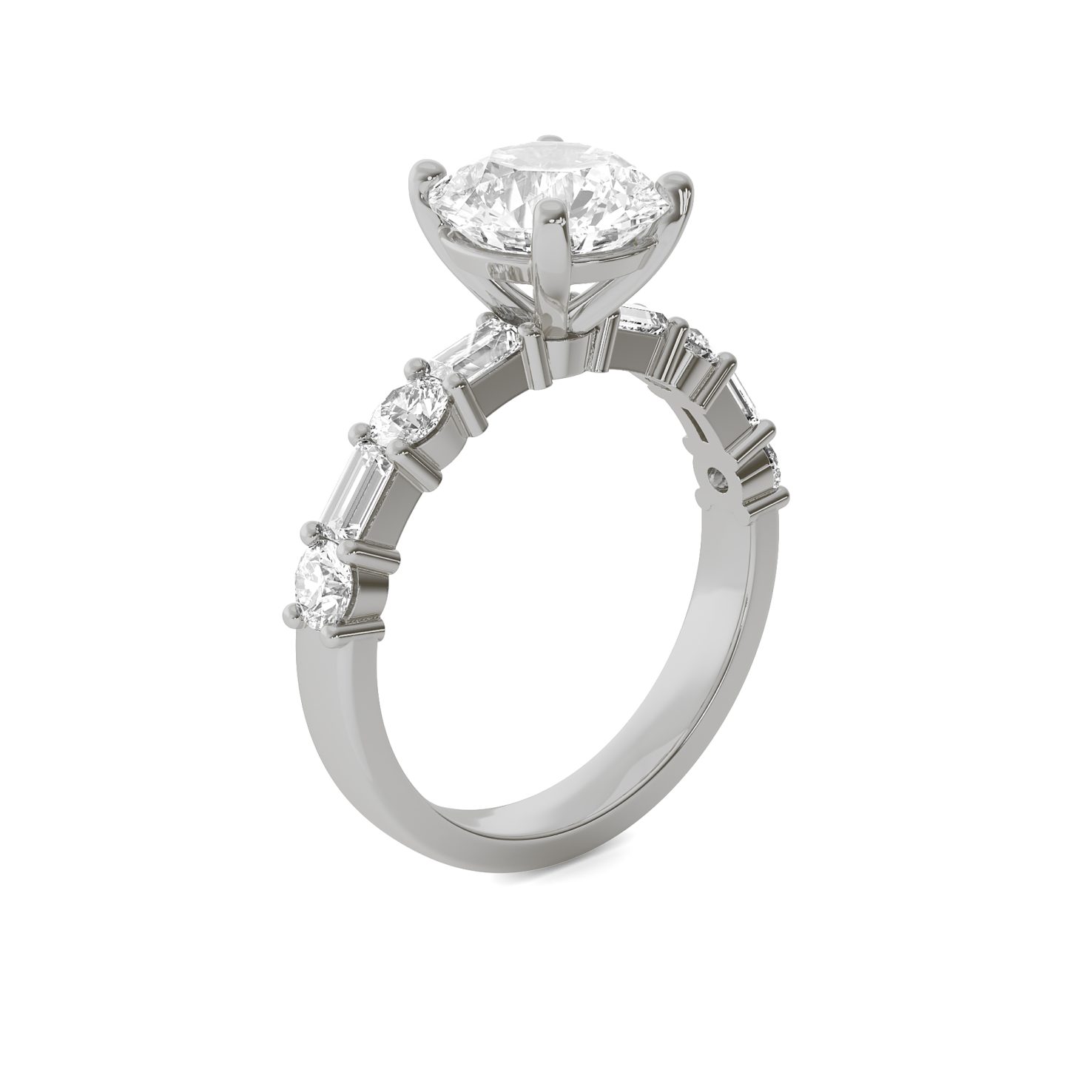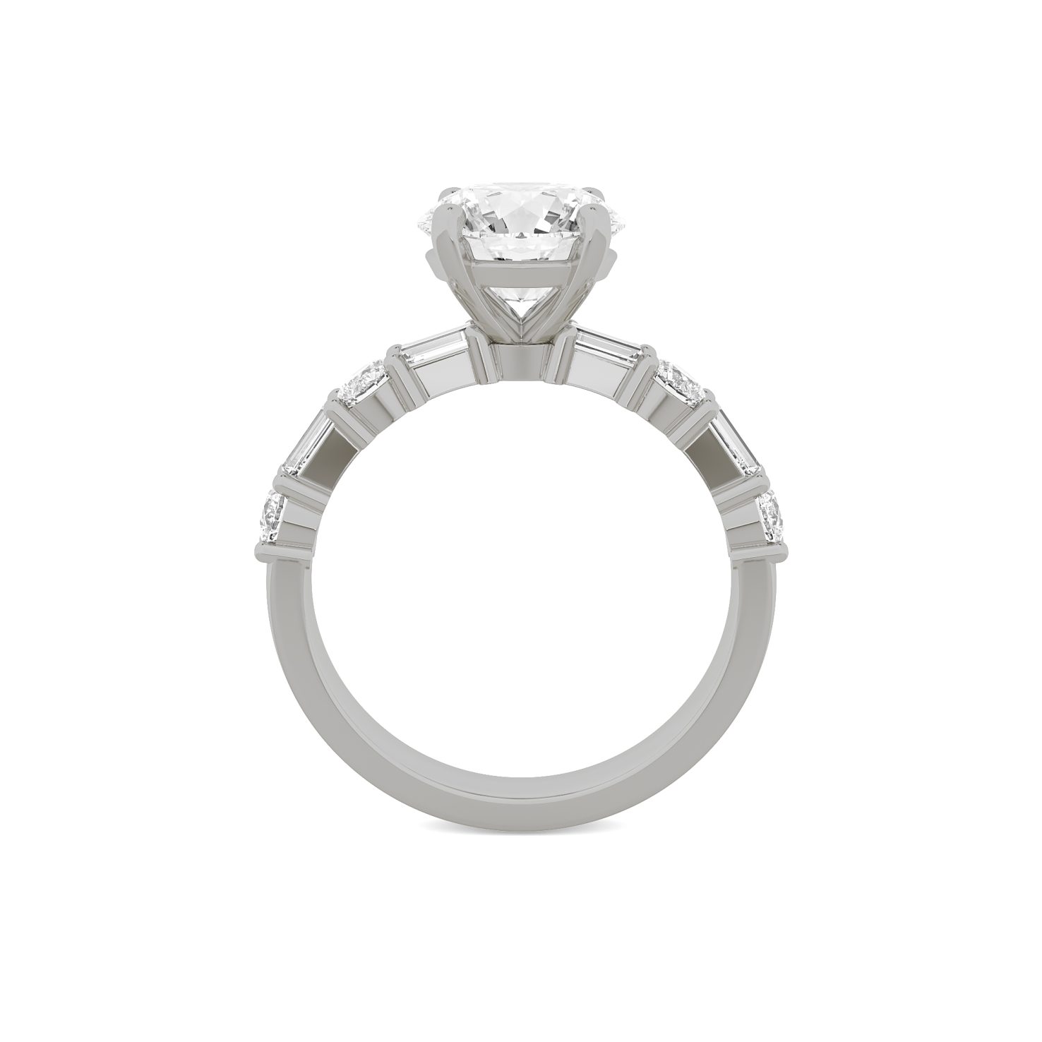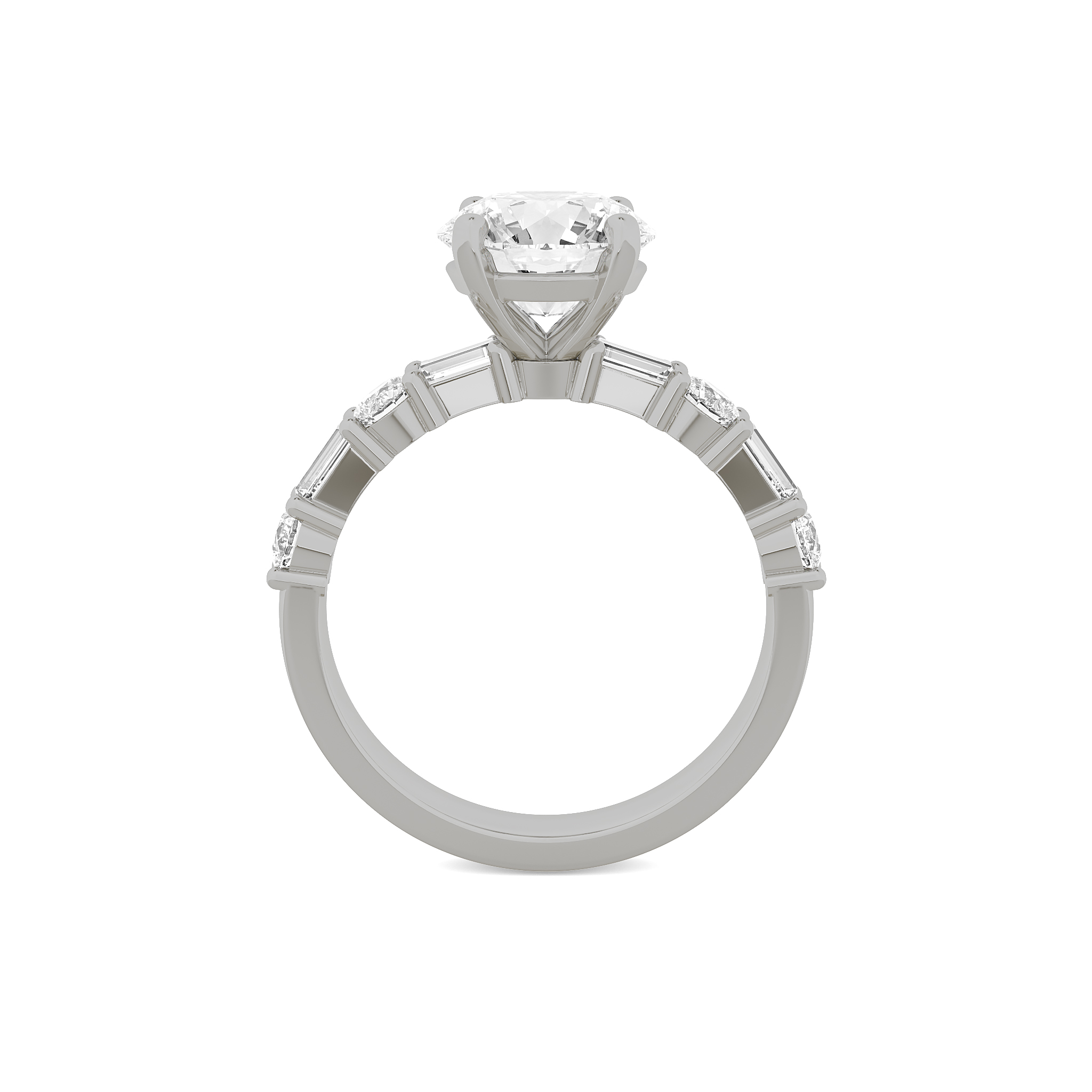 Alternating baguette and round diamond engagement ring. 2.8mm wide shank.