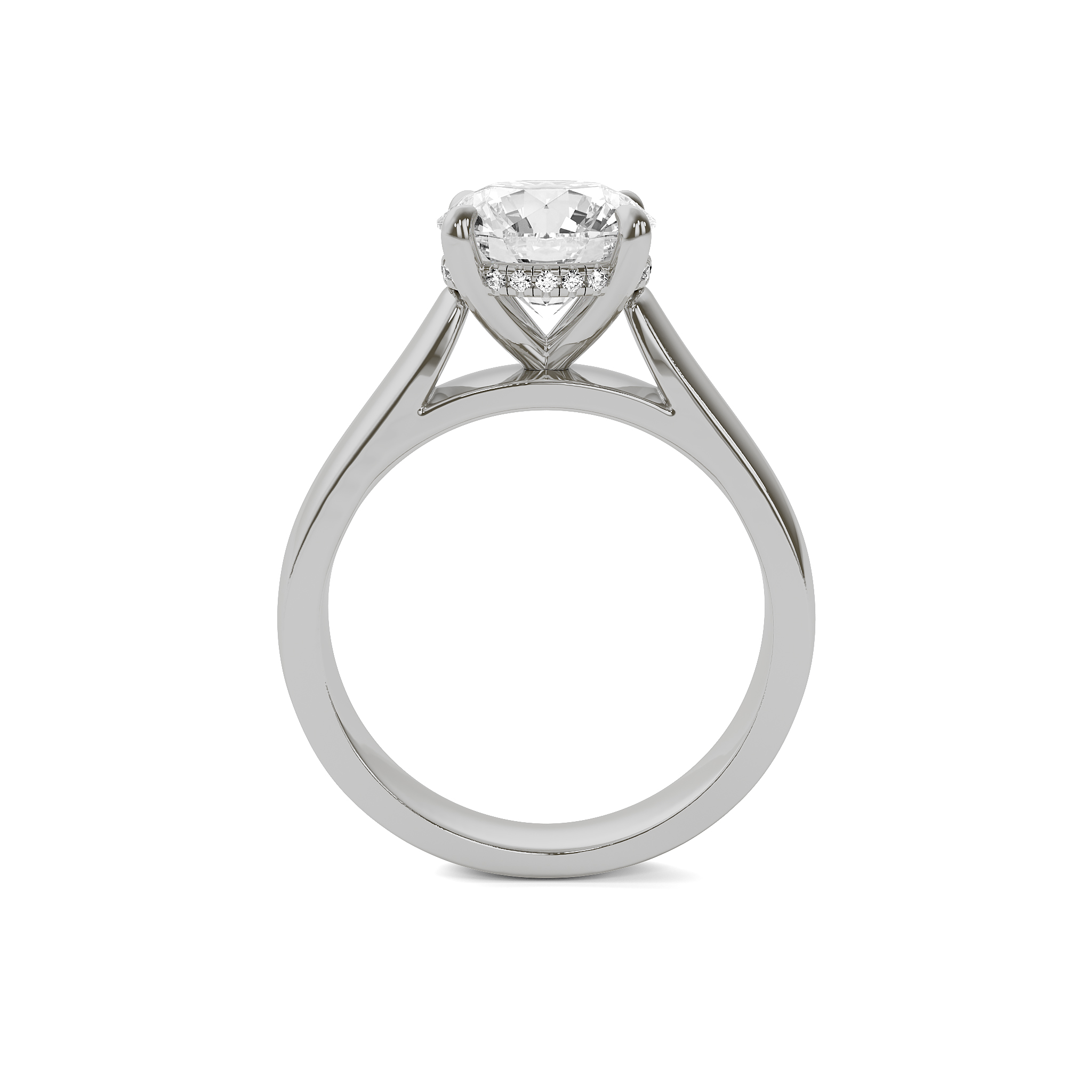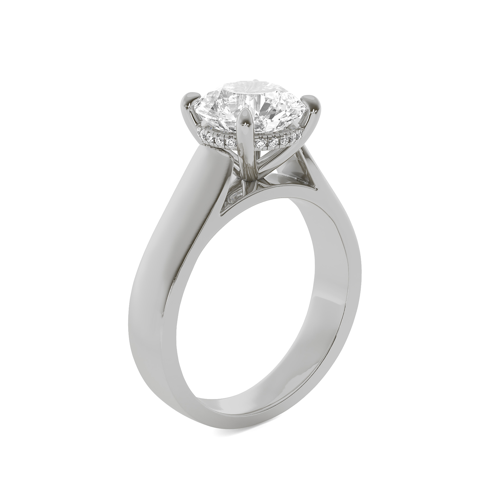 Wide hidden halo rounded cathedral engagement ring. 3.5mm wide shank.