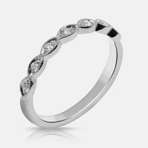 Shield shaped milgrain diamond cathedral shank with pave trellis.