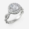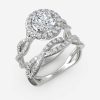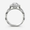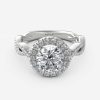 Round-shaped diamond encircled halo with loosely twisted diamond band